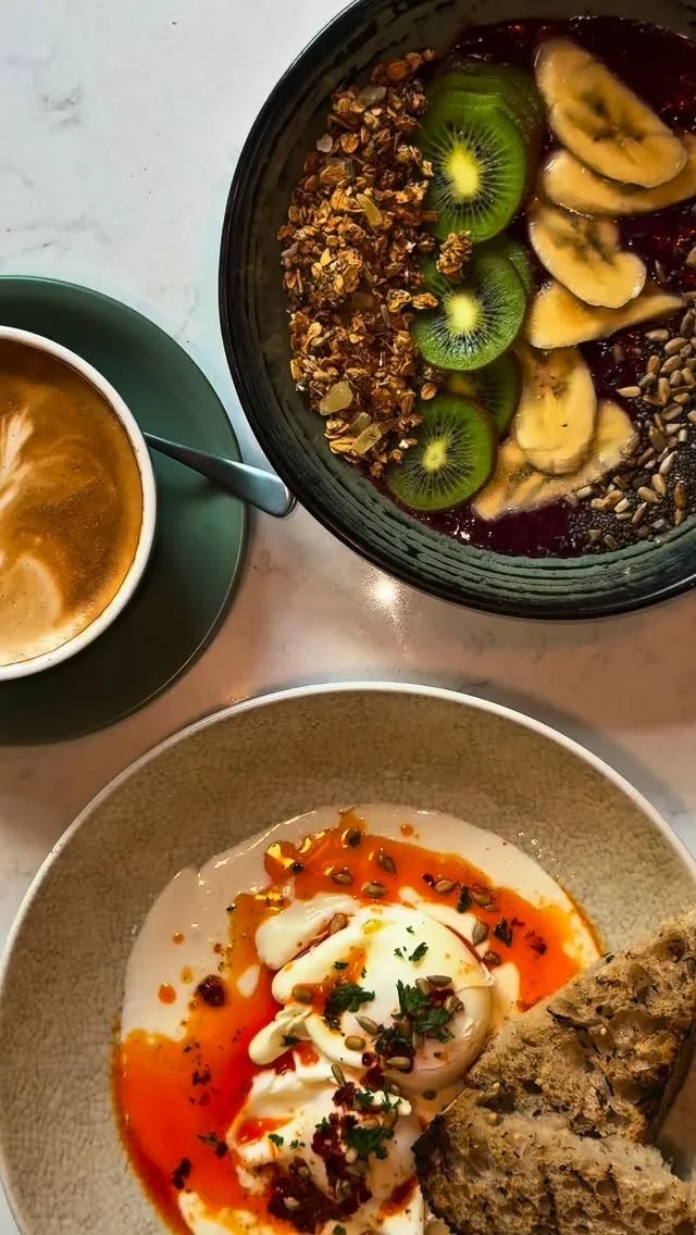 Join us 9am-1am for Acai Bowls + French Toast + Turkish Eggs + Coffee + Matcha + Smoothies + More